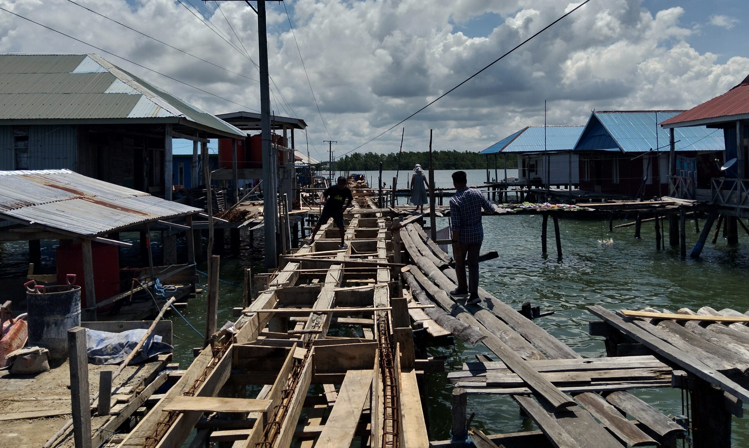 “Hanya saja bangunan tersebut besinya sudah terendam dengan air laut, sehingga kekuatannya masih sangat diragukan. Selain itu pembangunan jembatan Titian untuk warga sepertinya tidak lurus, sehingga terlihat bengkok,”katanya.