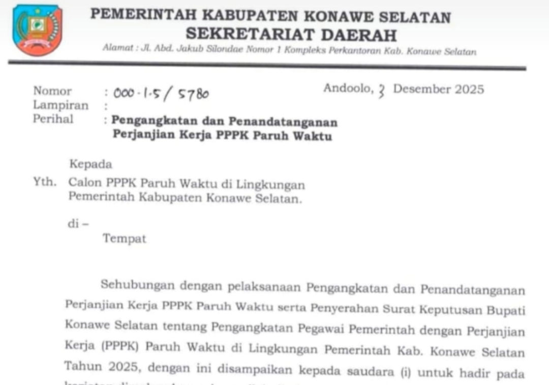 Pengurangan dana TKD tersebut bakal berimbas kepada Pegawai Pemerintah dengan Perjanjian Kontrak (PPPK) Paruh Waktu di Kabupaten Konsel.