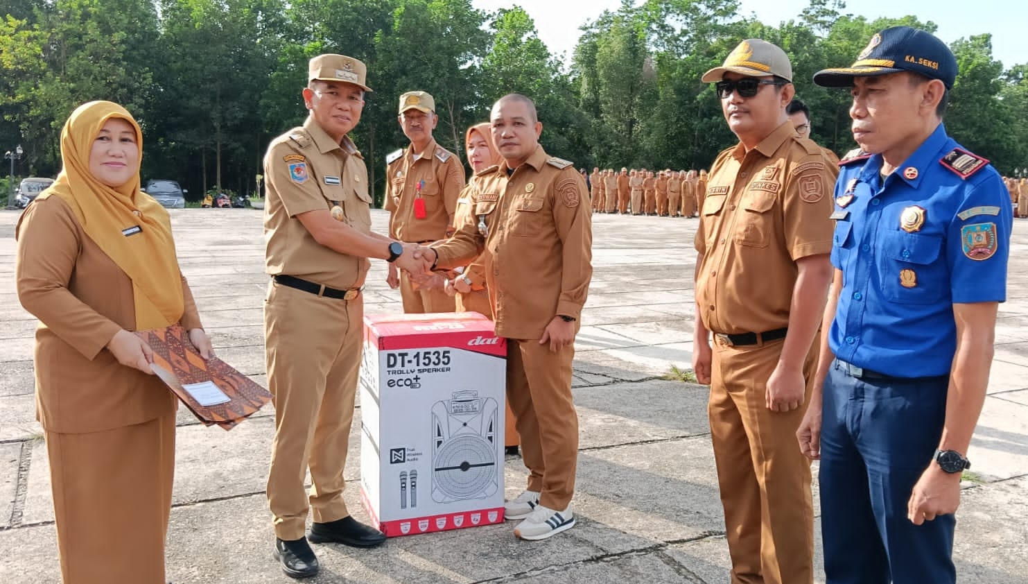 “Mari kita tingkatkan kinerja, prestasi kita akan memberikan perhatian. Meskipun nilainya tidak seberapa tetapi itu merupakan ukuran ukuran yang lebih baik lagi. Sekali lagi ayo kita kerja, bulan karena ada pimpinan yang kontrol,”katanya tegas.