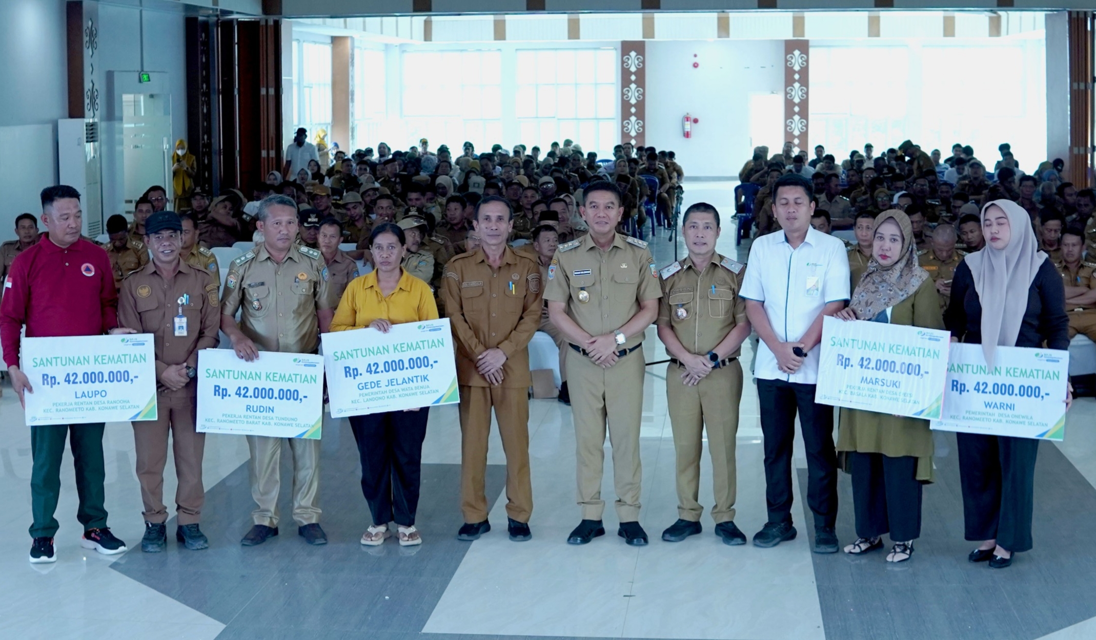Kegiatan kemudian dirangkai dengan penyerahan santunan BPJS Ketenagakerjaan kepada ahli waris dan dilanjutkan pemaparan materi dari Kajari dan Kapolres Konawe Selatan sebagai upaya preventif agar para Kepala Desa tidak terjerat permasalahan hukum dalam mengelola anggaran. Acara ditutup dengan sesi tanya jawab untuk menyerap aspirasi dan kendala yang dihadapi di lapangan.