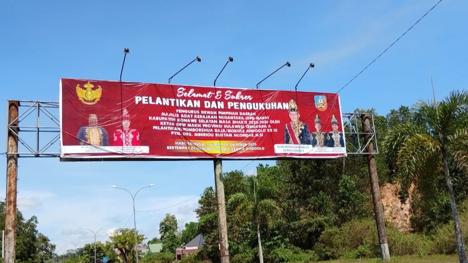 BeritaRakyat.Co, Konawe Selatan – Pelantikan dan Pengukuhan Dewan Pengurus Daerah (DPD) Majelis Adat Kerajaan Nusantara (MAKN) Mokole Andoolo pada tanggal 24 Oktober 2025 atau pada hari Jum’at pekan ini. Sejumlah persiapan pelantikan mokole Andoolo baik itu pemasangan Baliho, Benner ataupun undangan sudah terjadwal.
