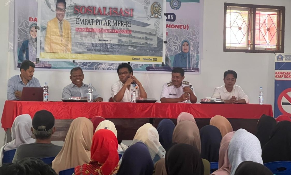 BeritaRakyat.Co,.Kendari – Anggota DPR RI Ir H Ridwan Bae, menggelar kegiatan Sosialisasi Empat Pilar MPR RI yang dilaksanakan di Kelurahan Mataiwoi, Kecamatan Kadia, Kota Kendari, Senin 15 Desember 2025.