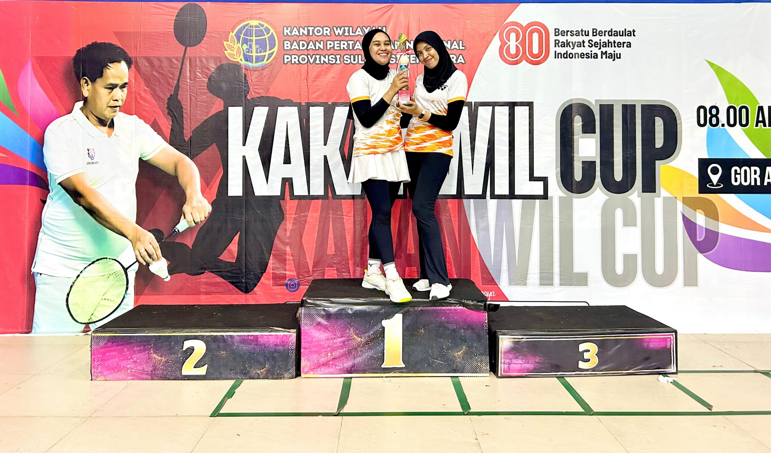 BeritaRakyat.co, Muna – Kantor Pertanahan Kabupaten Muna meraih juara 1 bulu tangkis ganda putri di turnamen bulu tangkis kanwil BPN Cup dalam rangka semarak Hari Ulang Tahun (HUT) Republik Indonesia (RI) ke-80 yang digelar di GOR Apriyani Kendari, tanggal 15-16 Agustus 2025.